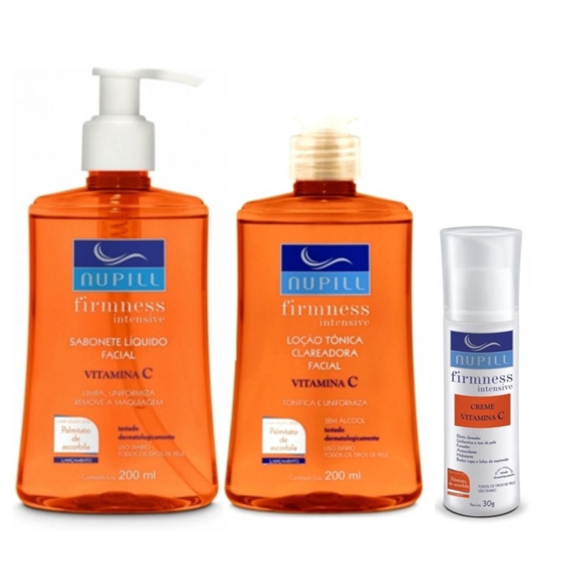 A linha Firmness Intensive Vitamina C da Nupill, traz um tratamento cosmético facial que limpa, hidrata, limpa, uniformiza reduz rugas e linhas de expressão, dentre outros benefícios.