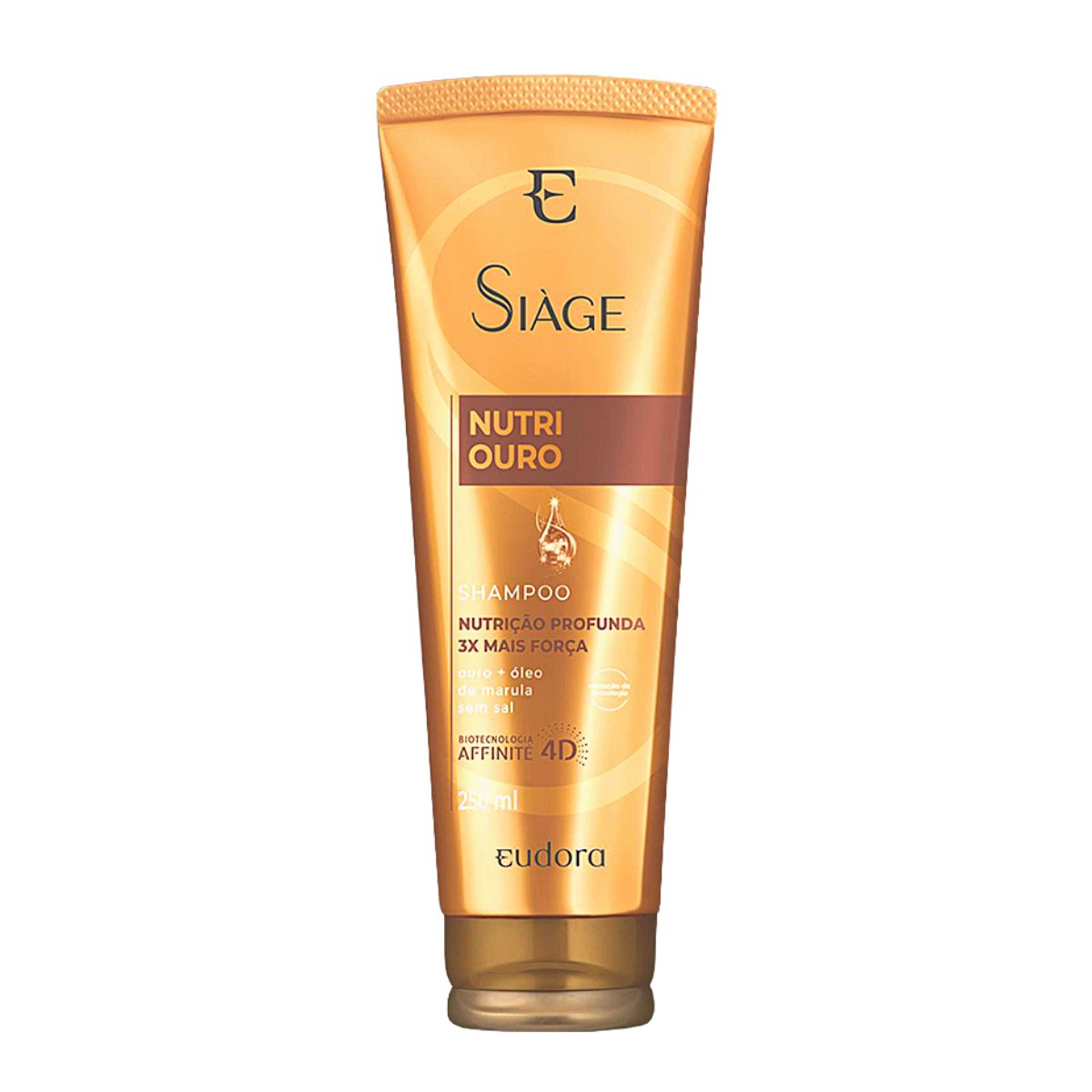 Shampoo Siage Eudora Nutri Ouro: tem espuma cremosa, limpa sem ressecar e oferece nutrição enriquecedora imediata.